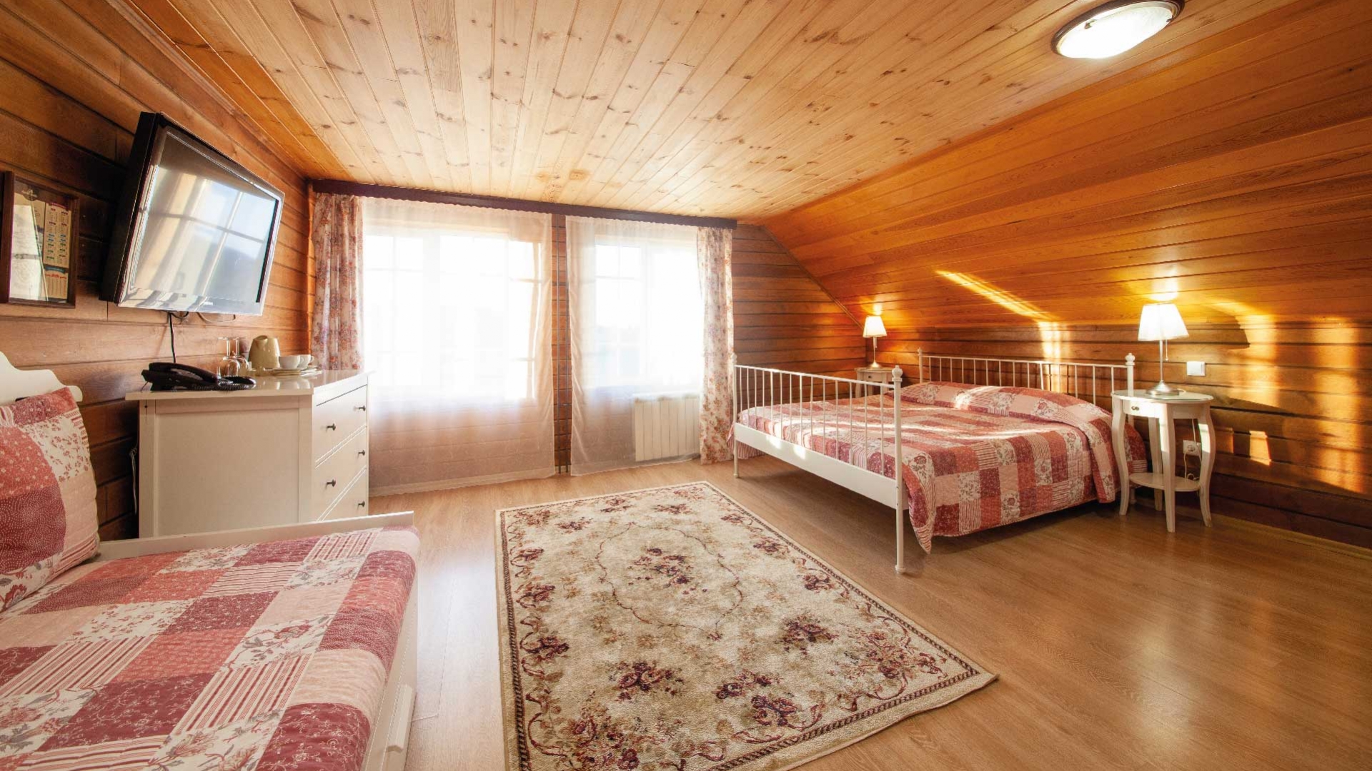 2-спальная кровать, раскладная кушетка, санузел с душевой кабиной, TV, чайник, фен. В комплекте на каждого гостя: 2 полотенца, гель для душа, шампунь.